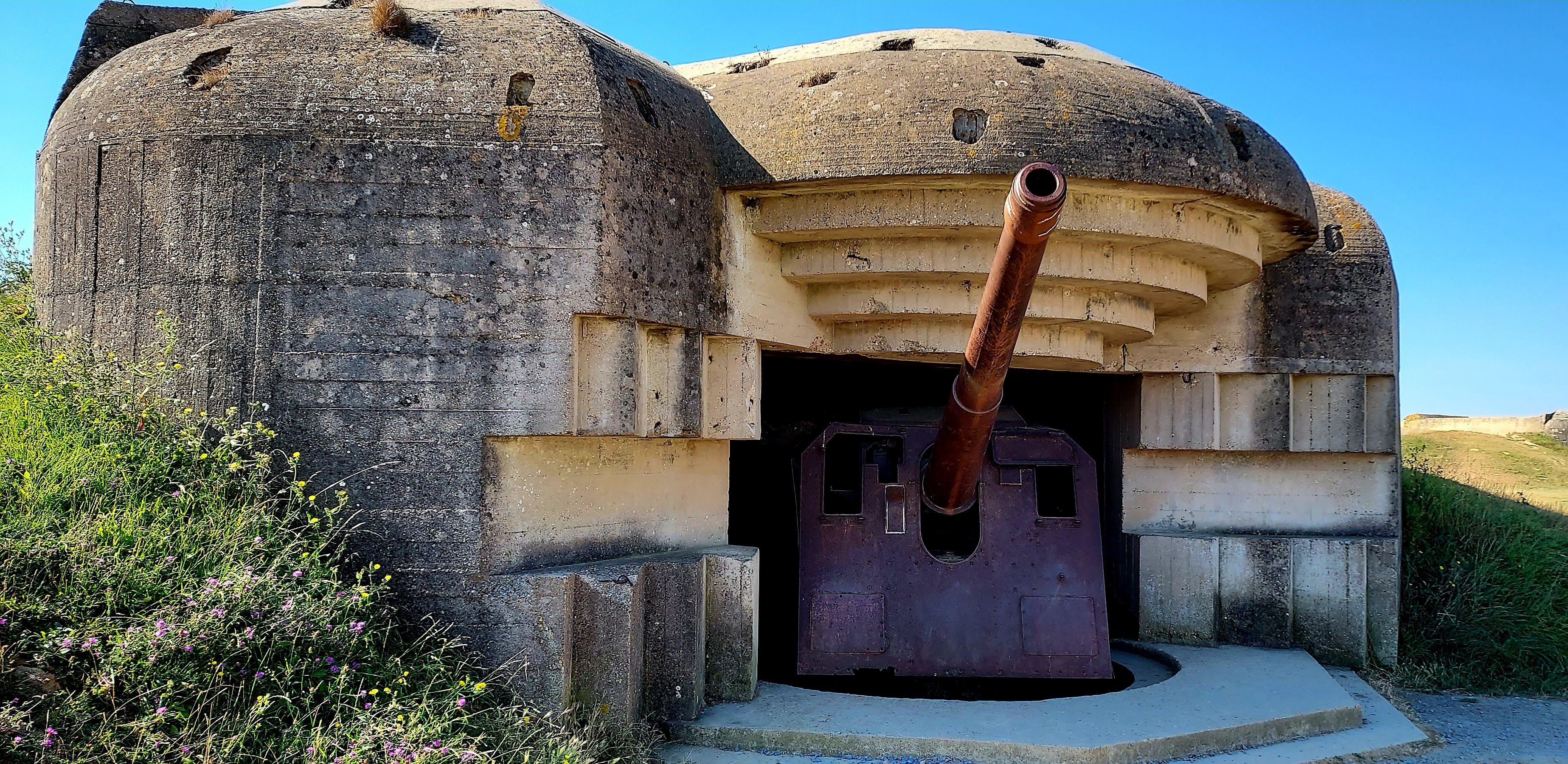 Balade guidée en Jeep Willys que je recommande, avec explications sur l'Histoire de la batterie de Longues sur Mer et le port artificiel d'Arromanches.