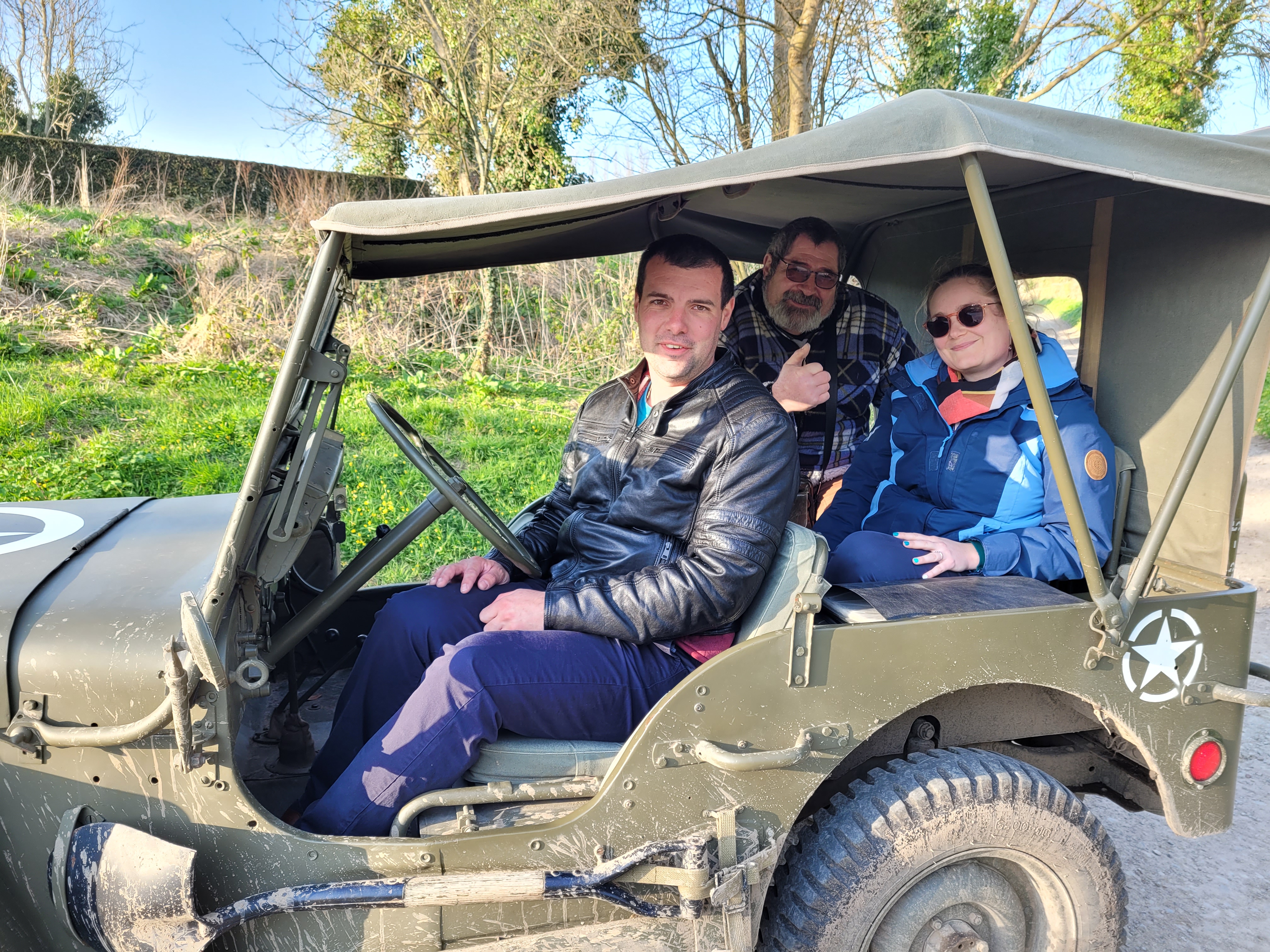 Une magnifique balade de 2h en Jeep Willis au cœur du bocage normand, théâtre des opérations du débarquement, grâce à Thomas, notre guide passionné et passionnant ! Nous avons beaucoup apprécié les explications et anecdotes que Thomas a recueilli auprès des vétérans lors de ses voyages aux Etats-Unis. Martin, du haut de ses 3 ans nous parle encore du Half-track et des divers véhicules militaires qu’il a vu au cours de la balade. Nous vous remercions encore pour ces échanges historiques, nous reviendrons les yeux fermés pour une autre visite avec Normandy discovery tour.